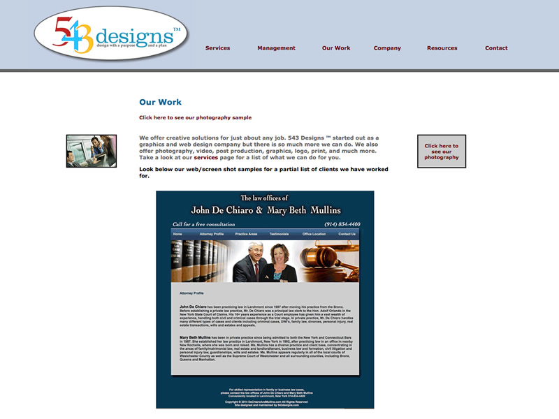 We started helping clients in New York City with graphic and web design through 543 Designs in the late 90's. By 2005, we became 543 Media, Inc with a whole other structure in place. So 543 Designs became a part of the larger picture; but what a beautiful picture it has become.